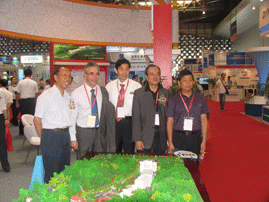 虹潤公司的展臺以中國傳統(tǒng)元素為主導(dǎo)設(shè)計風(fēng)格,在展臺的頂端,一副中國書法卷軸畫緩緩展開,“虹潤儀表”4個宋體大字在祥云的襯托下顯的雄渾有力。虹潤不怕遠征難的巨幅宣傳畫位于虹潤公司前臺的正上方,畫中蒼鷹在云端翱翔,虹潤員工團結(jié)一心,攜手并肩,朝著既定的目標勇攀高峰,奮勇前進。在展臺上虹潤公司還展示了按照順昌公司1:220比例制作的縮微全景沙盤。