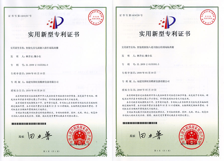 虹潤(rùn)智能安全柵是虹潤(rùn)公司全新一代本安系統(tǒng)防爆儀表。產(chǎn)品榮獲智能模擬輸入通訊輸出檢測(cè)端隔離柵(專(zhuān)利號(hào) 2009201553035)、智能電壓電流輸入操作端隔離柵(專(zhuān)利號(hào)2009201553020)2項(xiàng)實(shí)用新型專(zhuān)利,智能隔離式安全柵軟件(版權(quán)登記號(hào)2008SR21216)1項(xiàng)軟件著作權(quán),獲得國(guó)際SIL2功能安全認(rèn)證證書(shū)和國(guó)家防爆電氣產(chǎn)品質(zhì)量監(jiān)督檢驗(yàn)中心頒發(fā)的防爆電氣設(shè)備防爆合格證。