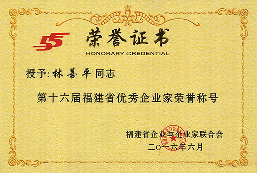 為弘揚優(yōu)秀企業(yè)家深化改革、科學管理、與時俱進、勇于創(chuàng)新的開拓精神,激勵廣大企業(yè)家敢為天下先、愛拼才會贏的闖勁,為推動福建省產(chǎn)業(yè)轉型升級和經(jīng)濟持續(xù)健康發(fā)展建功立業(yè),近日,福建省企業(yè)與企業(yè)家聯(lián)合會組織開展了每兩年評選一次的福建省優(yōu)秀企業(yè)家評選工作,并于2016年6月24日決定授予98位企業(yè)經(jīng)營管理者“第十六屆福建省優(yōu)秀企業(yè)家”榮譽稱號,虹潤公司董事長林善平榮獲該榮譽稱號。
