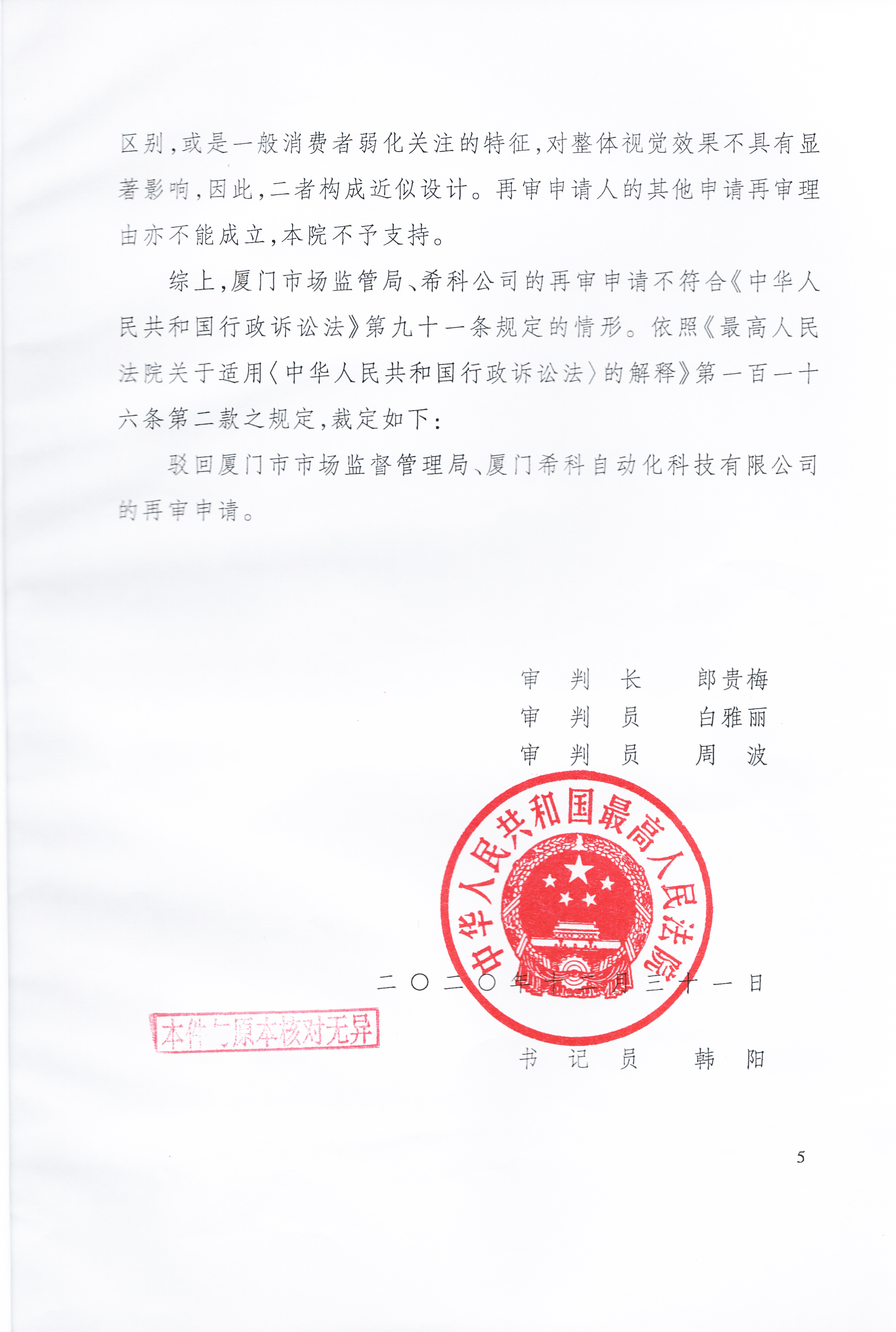 該案于2019年7月30日由福建省高級(jí)人民法院終審判定廈門(mén)??乒厩址负鐫?rùn)公司專(zhuān)利權(quán)。??乒静环?019年10月31日又向最高人民法院提出再審,最高人民法院在經(jīng)過(guò)長(zhǎng)期的嚴(yán)格調(diào)查審理后,于近期最終判定廈門(mén)希科公司侵權(quán)并駁回其上訴請(qǐng)求。