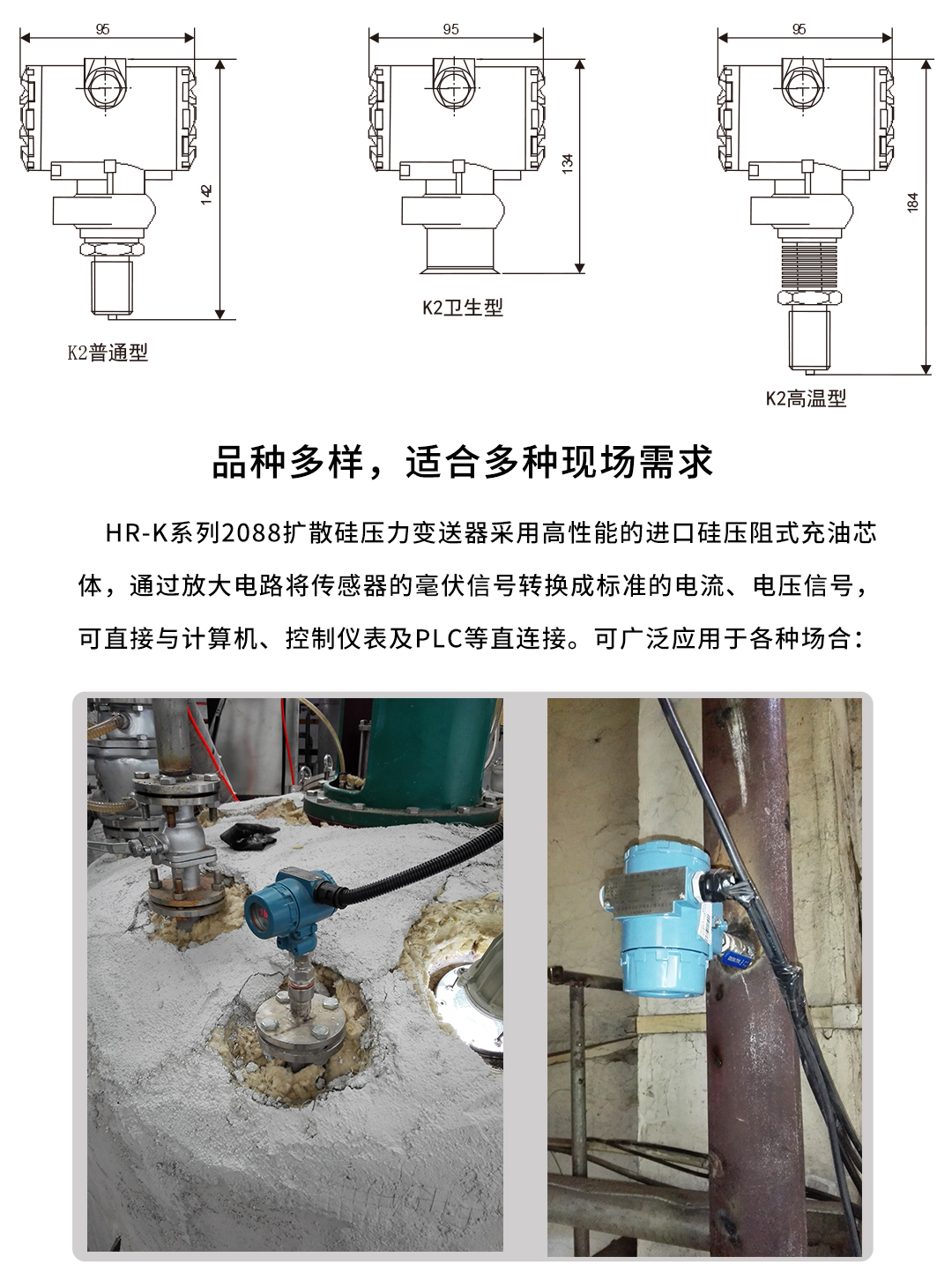 虹潤公司是專業(yè)生產(chǎn)壓力變送器的國家專精特新“小巨人”企業(yè),生產(chǎn)的擴(kuò)散硅壓力變送器,具有精度高,穩(wěn)定性好,響應(yīng)速度快,高可靠性,抗過載和抗沖擊能力強(qiáng),安裝方便等特點(diǎn)。產(chǎn)品獲得一種數(shù)字顯示低功耗壓力表、一種信號(hào)發(fā)生器裝置等2項(xiàng)國家發(fā)明專利,主持起草工業(yè)過程控制系統(tǒng)用模擬輸入兩位或多位輸出儀表、工業(yè)過程測(cè)量和控制系統(tǒng)用壓力/差壓變送器等2項(xiàng)國家標(biāo)準(zhǔn),通信系統(tǒng)多通道數(shù)據(jù)采集控制終端規(guī)范軍用標(biāo)準(zhǔn),以及現(xiàn)場(chǎng)設(shè)備集成等5項(xiàng)智能制造國家標(biāo)準(zhǔn)。參與國際5G標(biāo)準(zhǔn)制定,取得數(shù)顯壓力表等2項(xiàng)相關(guān)軟件著作權(quán)。產(chǎn)品廣泛應(yīng)用于化工、食品、制藥、電力、設(shè)備配套、供暖、水處理、樓宇等行業(yè),需精準(zhǔn)測(cè)量流體壓力的現(xiàn)場(chǎng)。