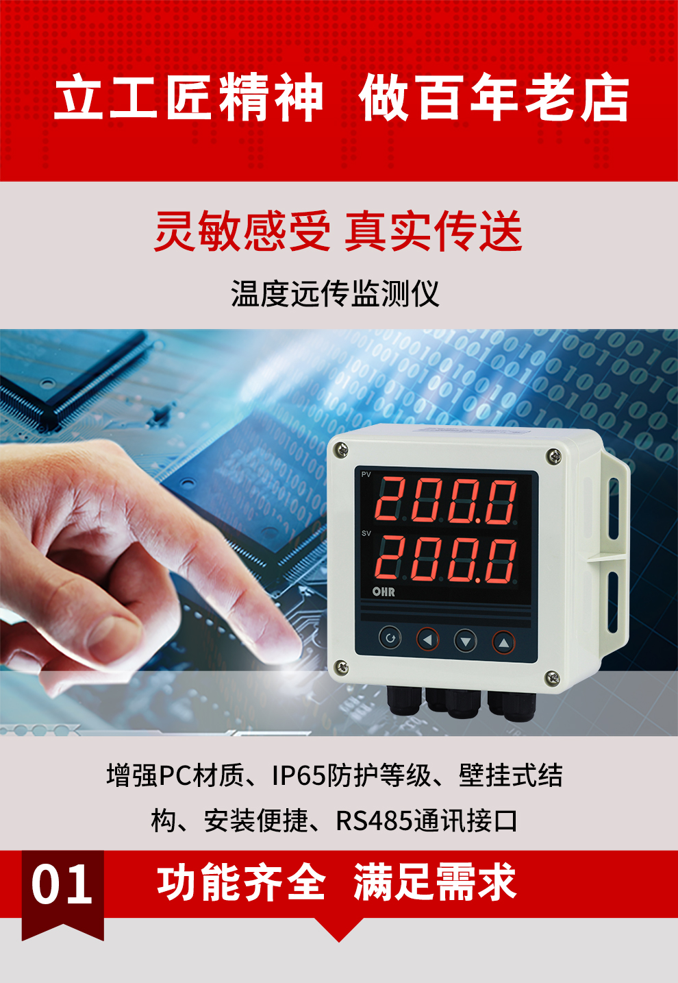 虹潤(rùn)公司是專(zhuān)業(yè)生產(chǎn)多路溫度巡檢儀的國(guó)家專(zhuān)精特新“小巨人”企業(yè),生產(chǎn)的溫度遠(yuǎn)傳監(jiān)測(cè)儀,具有兩路PT100信號(hào)輸入,壁掛式結(jié)構(gòu),IP65防護(hù)等級(jí),高抗干擾,帶RS485通訊輸出等特點(diǎn)。產(chǎn)品獲得巡回檢測(cè)顯示方法及裝置、儀表殼體等2項(xiàng)國(guó)家發(fā)明專(zhuān)利,主持起草工業(yè)過(guò)程控制系統(tǒng)用模擬輸入兩位或多位輸出儀表、物聯(lián)網(wǎng)智能溫度儀表通用技術(shù)條件等2項(xiàng)國(guó)家標(biāo)準(zhǔn)以及通信系統(tǒng)多通道數(shù)據(jù)采集控制終端規(guī)范軍用標(biāo)準(zhǔn),參與國(guó)際5G標(biāo)準(zhǔn)制定,取得雙路回路溫度遠(yuǎn)傳監(jiān)測(cè)儀等2項(xiàng)相關(guān)軟件著作權(quán)。產(chǎn)品廣泛應(yīng)用于電力、石化、冶金、制藥、水處理、機(jī)械配套等各種工業(yè)現(xiàn)場(chǎng)。