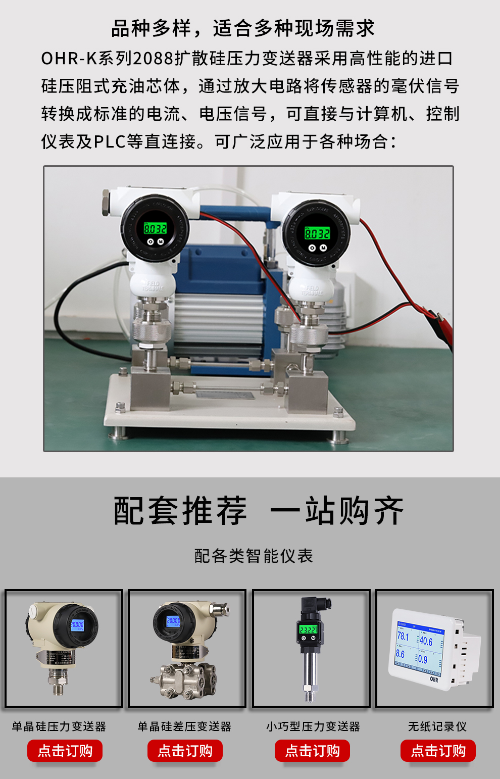 虹潤(rùn)公司是專業(yè)生產(chǎn)壓力變送器的國(guó)家專精特新“小巨人”企業(yè),生產(chǎn)的擴(kuò)散硅壓力變送器,具有精度高,穩(wěn)定性好,響應(yīng)速度快,高可靠性,抗過載和抗沖擊能力強(qiáng),安裝方便等特點(diǎn)。產(chǎn)品獲得一種數(shù)字顯示低功耗壓力表、一種信號(hào)發(fā)生器裝置等2項(xiàng)國(guó)家發(fā)明專利,主持起草工業(yè)過程控制系統(tǒng)用模擬輸入兩位或多位輸出儀表、工業(yè)過程測(cè)量和控制系統(tǒng)用壓力/差壓變送器等2項(xiàng)國(guó)家標(biāo)準(zhǔn),通信系統(tǒng)多通道數(shù)據(jù)采集控制終端規(guī)范軍用標(biāo)準(zhǔn),以及現(xiàn)場(chǎng)設(shè)備集成等5項(xiàng)智能制造國(guó)家標(biāo)準(zhǔn)。參與國(guó)際5G標(biāo)準(zhǔn)制定,取得數(shù)顯壓力表等2項(xiàng)相關(guān)軟件著作權(quán)。產(chǎn)品廣泛應(yīng)用于化工、食品、制藥、電力、設(shè)備配套、供暖、水處理、樓宇等行業(yè),需精準(zhǔn)測(cè)量流體壓力的現(xiàn)場(chǎng)。