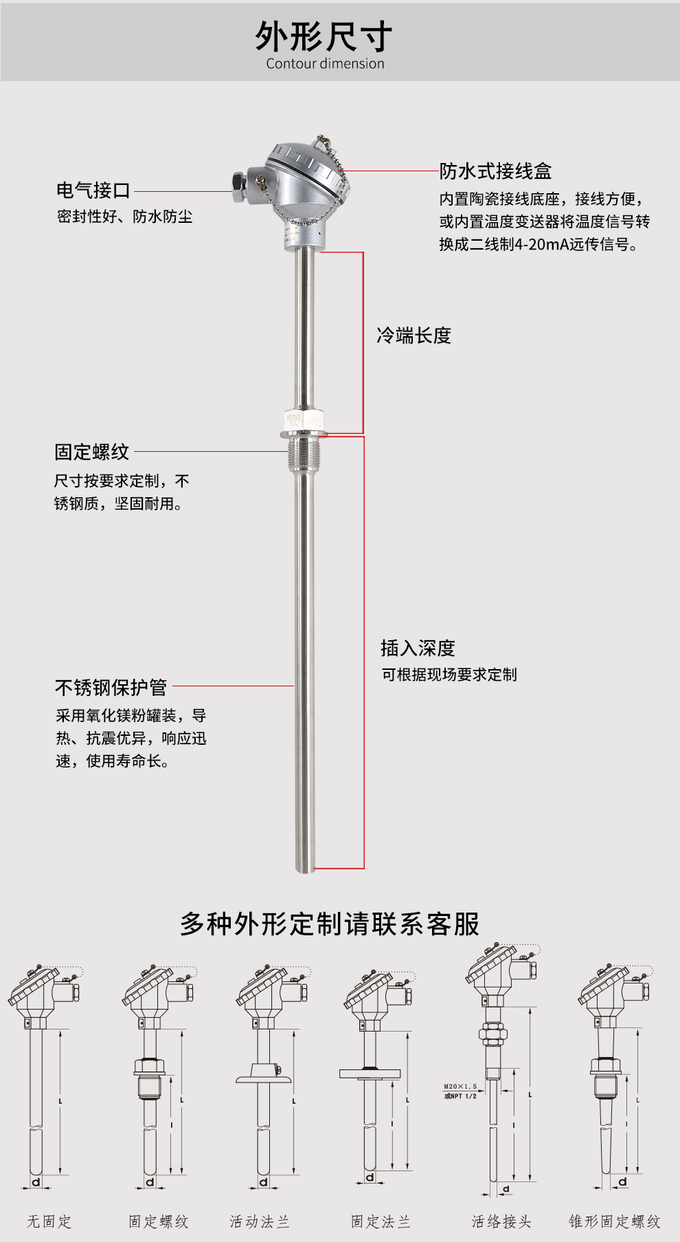 裝配式熱電阻熱電偶作為溫度測(cè)量傳感器,通常與溫度變送器、調(diào)節(jié)器及顯示儀表等配套使用,組成過程控制系統(tǒng),用以直接測(cè)量或控制各種生產(chǎn)過程中流體、蒸汽和氣體介質(zhì)以及固體表面等溫度。