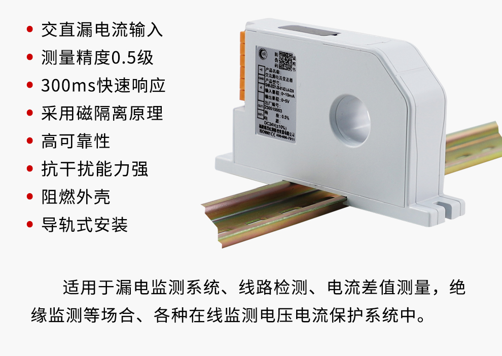 虹潤公司是專業(yè)生產(chǎn)電流傳感器的國家專精特新“小巨人”企業(yè)。生產(chǎn)的交流/直流漏電流變送器,具有交直漏電電流輸入、高精準(zhǔn)測量、響應(yīng)速度快、高抗干擾、全隔離設(shè)計(jì)等特點(diǎn)。產(chǎn)品獲得一種交流信號變送器、交直流信號轉(zhuǎn)換電路、基于DCS技術(shù)的盤裝式三相電量表等3項(xiàng)國家發(fā)明專利,主持起草工業(yè)過程控制系統(tǒng)用模擬輸入兩位或多位輸出儀表國家標(biāo)準(zhǔn),直流漏電流傳感器規(guī)范、通信系統(tǒng)多通道數(shù)據(jù)采集控制終端規(guī)范等2項(xiàng)軍用標(biāo)準(zhǔn),以及現(xiàn)場設(shè)備集成等5項(xiàng)智能制造國家標(biāo)準(zhǔn),參與國際5G標(biāo)準(zhǔn)制定。產(chǎn)品廣泛應(yīng)用于工業(yè)自動化、電力、新能源、科研實(shí)驗(yàn)基礎(chǔ)設(shè)施等需要電力參數(shù)監(jiān)測的領(lǐng)域。