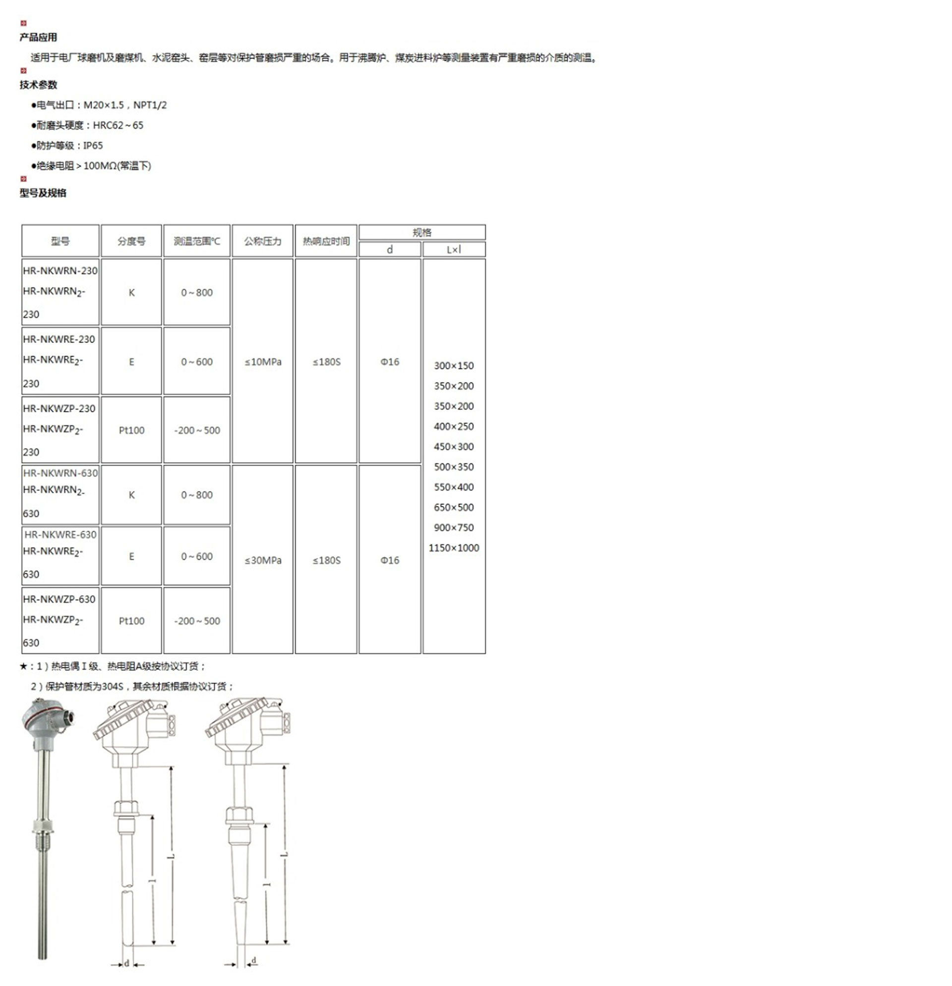 耐磨熱電偶(阻)采用等離子噴漆技術、高鉻鑄鐵和高溫合金不同材料制成的耐磨保護管,專門為高、中、低溫耐磨環(huán)境的測量場合設計制造的,可適用于循環(huán)流化床、沸騰爐、水泥回轉(zhuǎn)窯尾煙室