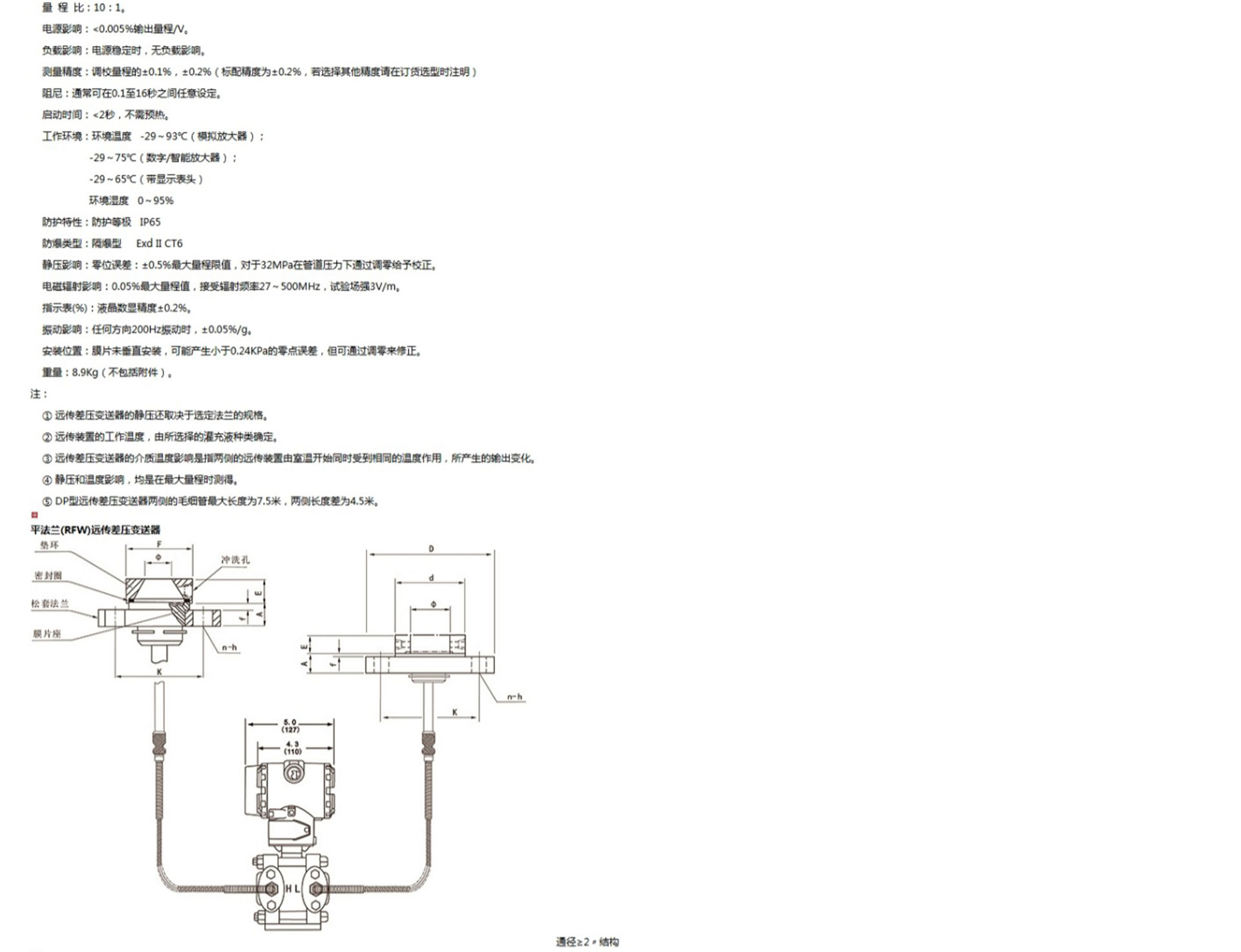HR-3051DP遠(yuǎn)傳差壓變送器是一種通過安裝在管道或容器上的遠(yuǎn)傳裝置來(lái)感受被測(cè)壓力,該壓力經(jīng)毛細(xì)管內(nèi)的灌充硅油(或其它的液體)傳遞至變送器的主體,然后由變送器主體內(nèi)的δ室和放大線路板,將壓力或差壓轉(zhuǎn)換4~20mA.DC信號(hào)輸出。