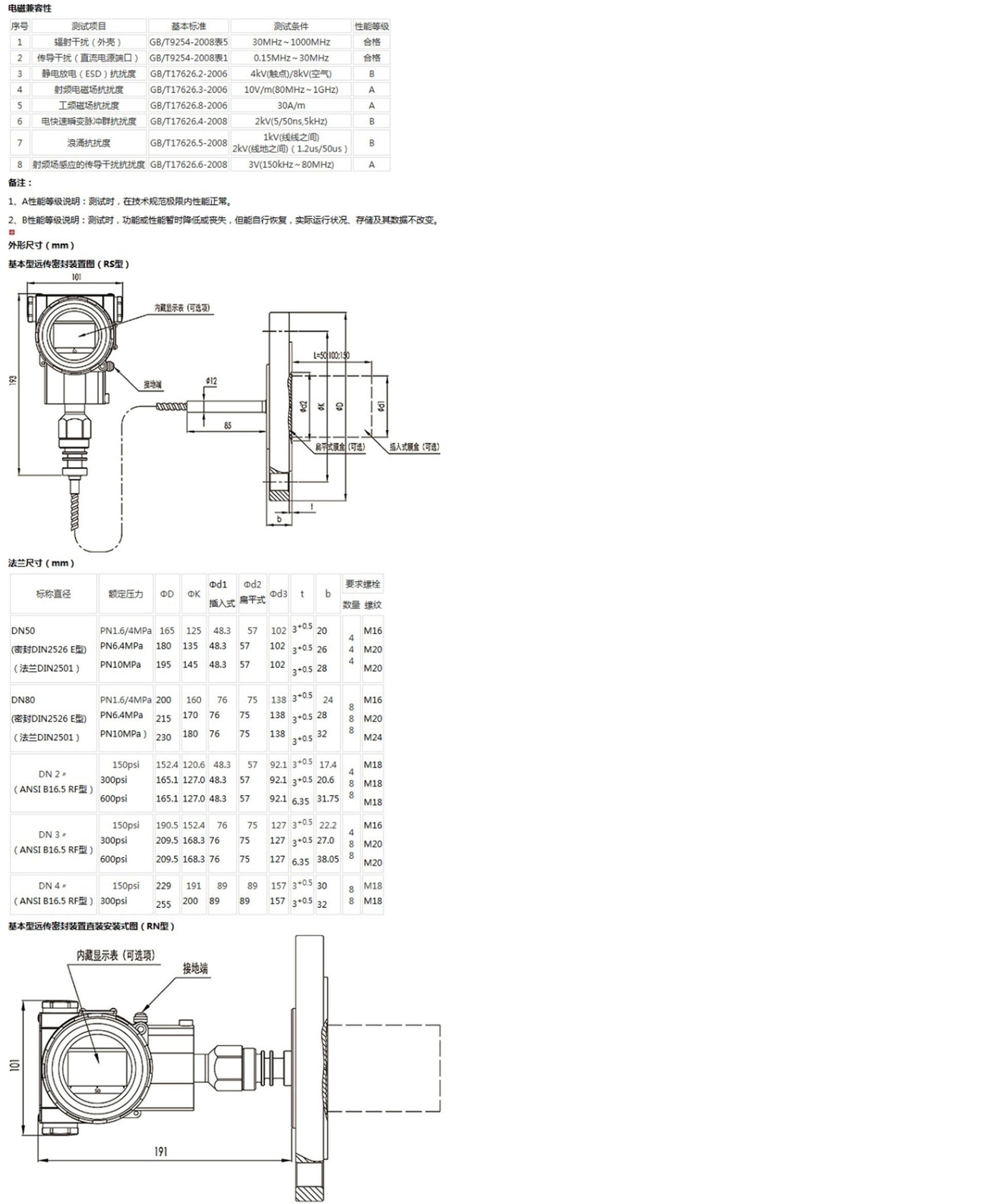 該產(chǎn)品用于測(cè)量液體、氣體或蒸汽的液位、密度、壓力,將其轉(zhuǎn)變成4~20mA (HART)電流輸出信號(hào),可通過RST375手持終端對(duì)它們進(jìn)行參數(shù)設(shè)定、過程監(jiān)控等。測(cè)量范圍(未遷移時(shí))為0-6kPa~25MPa,液位法蘭的額定壓力分別為:1.6/4MPa、6.4MPa、10MPa、150psi、300psi或600psi。