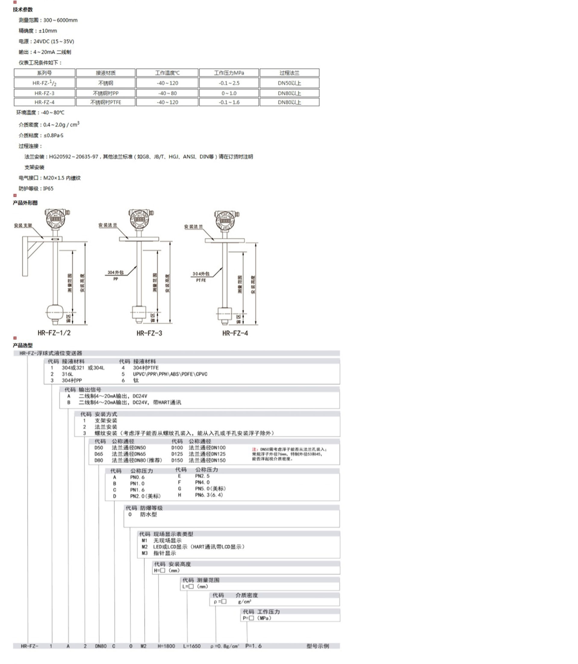 HR-FZ系列浮球式液位變送器,用于將容器內的介質液位變送為4~20mA二線制標準信號輸出。另外,變送器還可以提供現(xiàn)場指示。