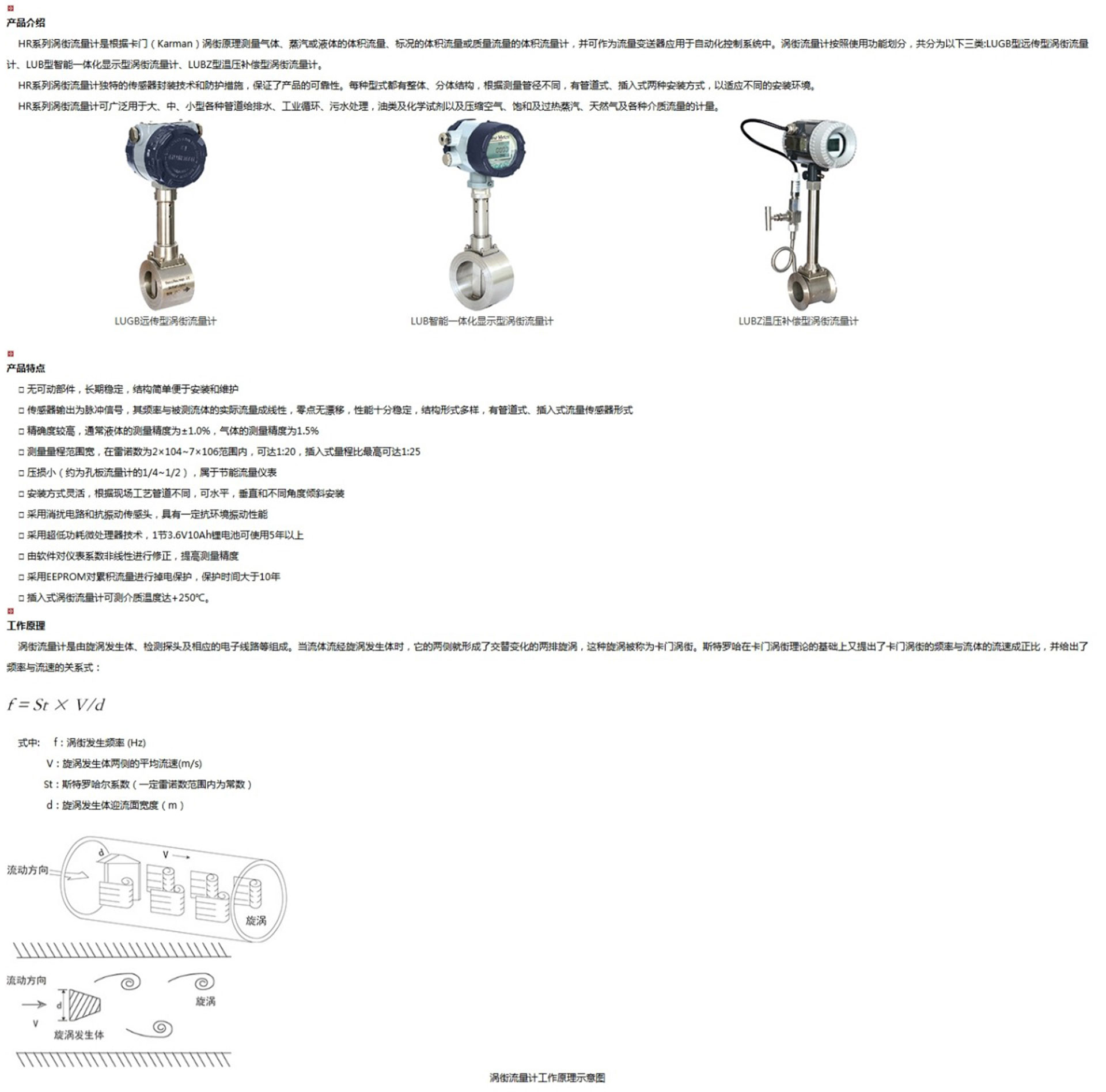 HR系列渦街流量計(jì)是根據(jù)卡門(Karman)渦街原理測(cè)量氣體、蒸汽或液體的體積流量、標(biāo)況的體積流量或質(zhì)量流量的體積流量計(jì),并可作為流量變送器應(yīng)用于自動(dòng)化控制系統(tǒng)中。廣泛用于大、中、小型各種管道給排水、工業(yè)循環(huán)、污水處理,油類及化學(xué)試劑以及壓縮空氣、飽和及過(guò)熱蒸汽、天然氣及各種介質(zhì)流量的計(jì)量。